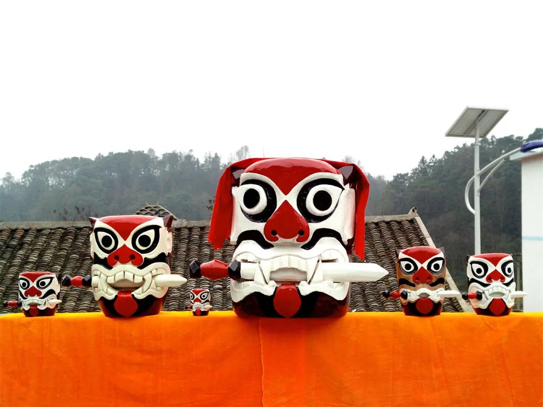 后来,当地人便仿学制作傩具的办法,请工匠用白柳或秋木雕制成人首、凸眼、狗耳、宽鼻、獠牙、咧嘴、伸舌、口含利剑的模样,并绘上颜色,让“吞口”大神在门头上稳坐,常保安康。