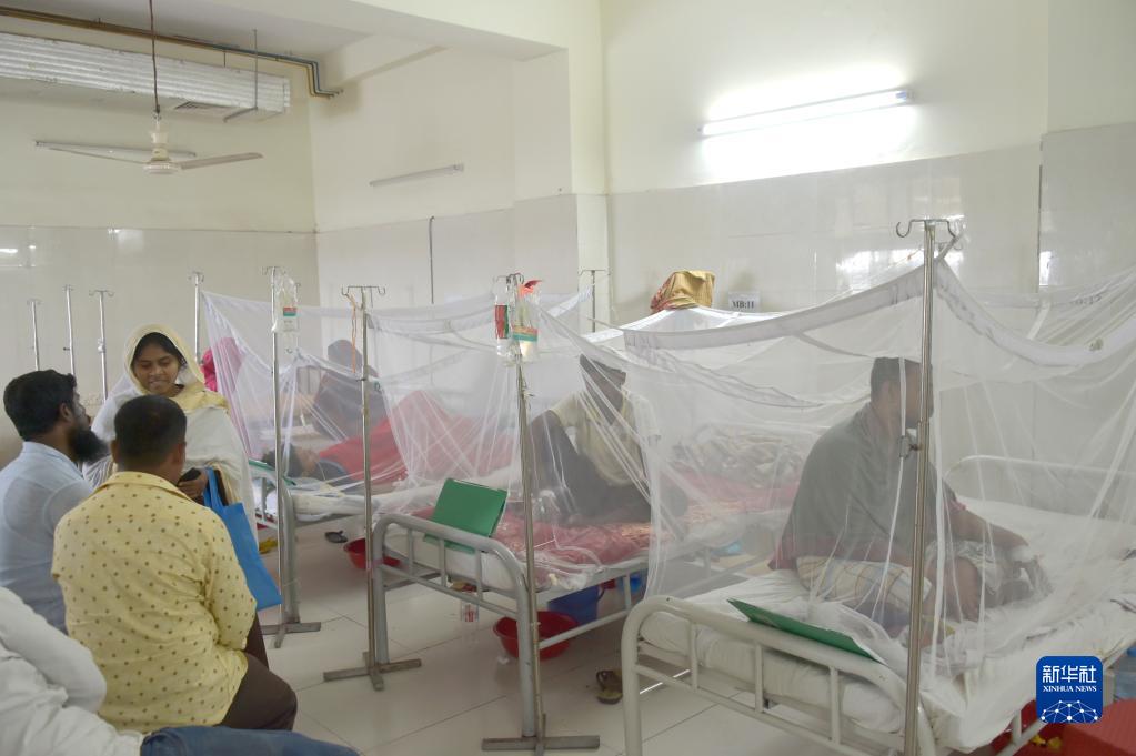 7月4日,在孟加拉国达卡一处医院,登革热患者在蚊帐里接受治疗。新华社发