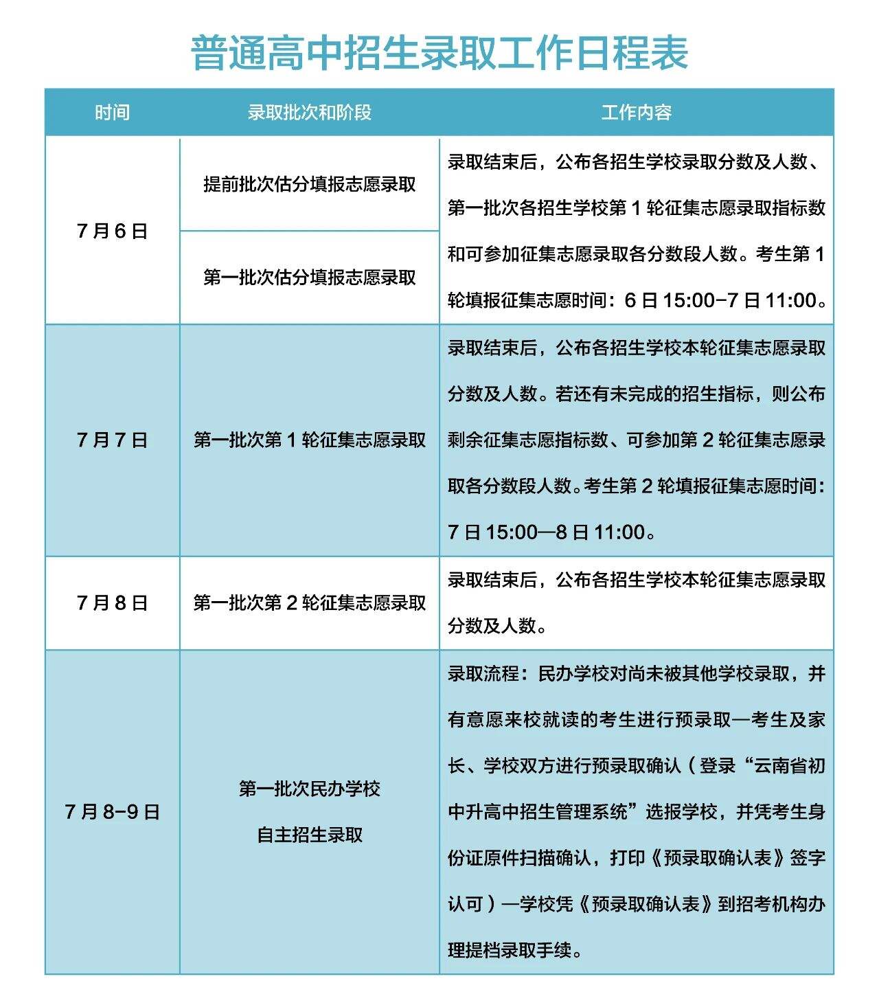各位中考生和家长看过来,根据《2023年昆明市普通高中招生录取工作日程表》,昆明市2023年普通高中招生录取工作,从2023年7月6日开始,到7月25日全部结束。