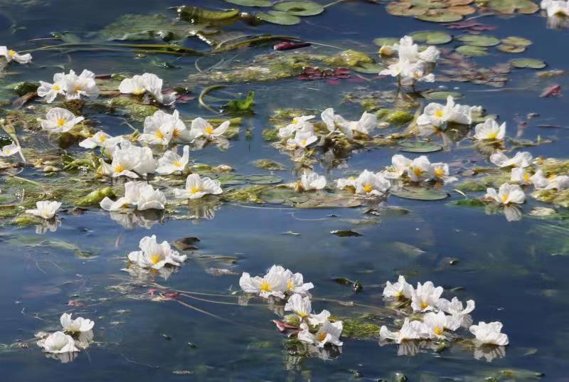海菜花绽放,更是吸引了游人的目光。他们为之驻足,拿起相机或手机捕捉这美丽,快门的声音不断响起,记录下每一朵花绽放的精彩瞬间。