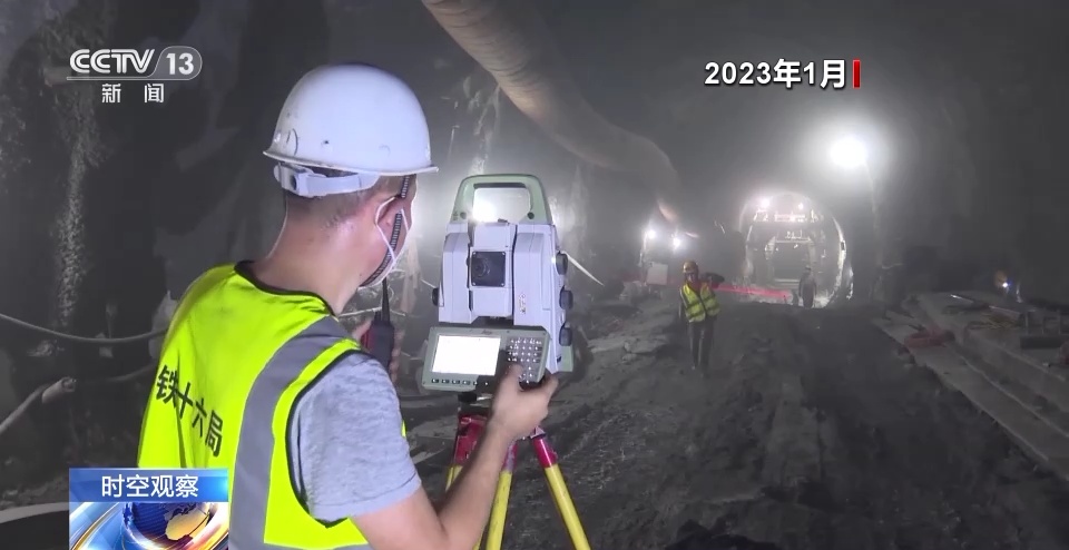在施工现场,记者遇到了工区测量队的队长梁超钧。他的工作性质很特殊,要随时与“毫米”较真,他的测量数据为隧道的掘进提供了重要参考。
