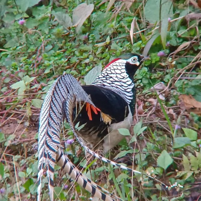7月6日,云南省保山市龙陵县摄影爱好者在龙陵小黑山省级自然保护区周边区域,偶遇白腹锦鸡在林间空地上悠闲散步的场景,并有幸近距离记录下一段珍贵的视频。