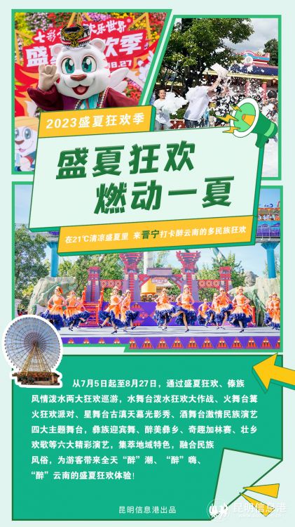 昆明信息港讯 记者李莹 喻彬 制图冯垚 7月11日,2023昆明郑和文化旅游节拉开序幕,7大类26项丰富活动贯穿整年。开幕式当天,“郑和杯”越野摩托大奖赛、“绘彩古滇·花样晋宁”儿童绘画大赛等精彩活动抢先亮相。即日起至年底,晋宁玫瑰节、非遗民族民间艺术、特色美食展、美丽乡村主题活动、盛夏狂欢季等精彩好戏将轮番上演。