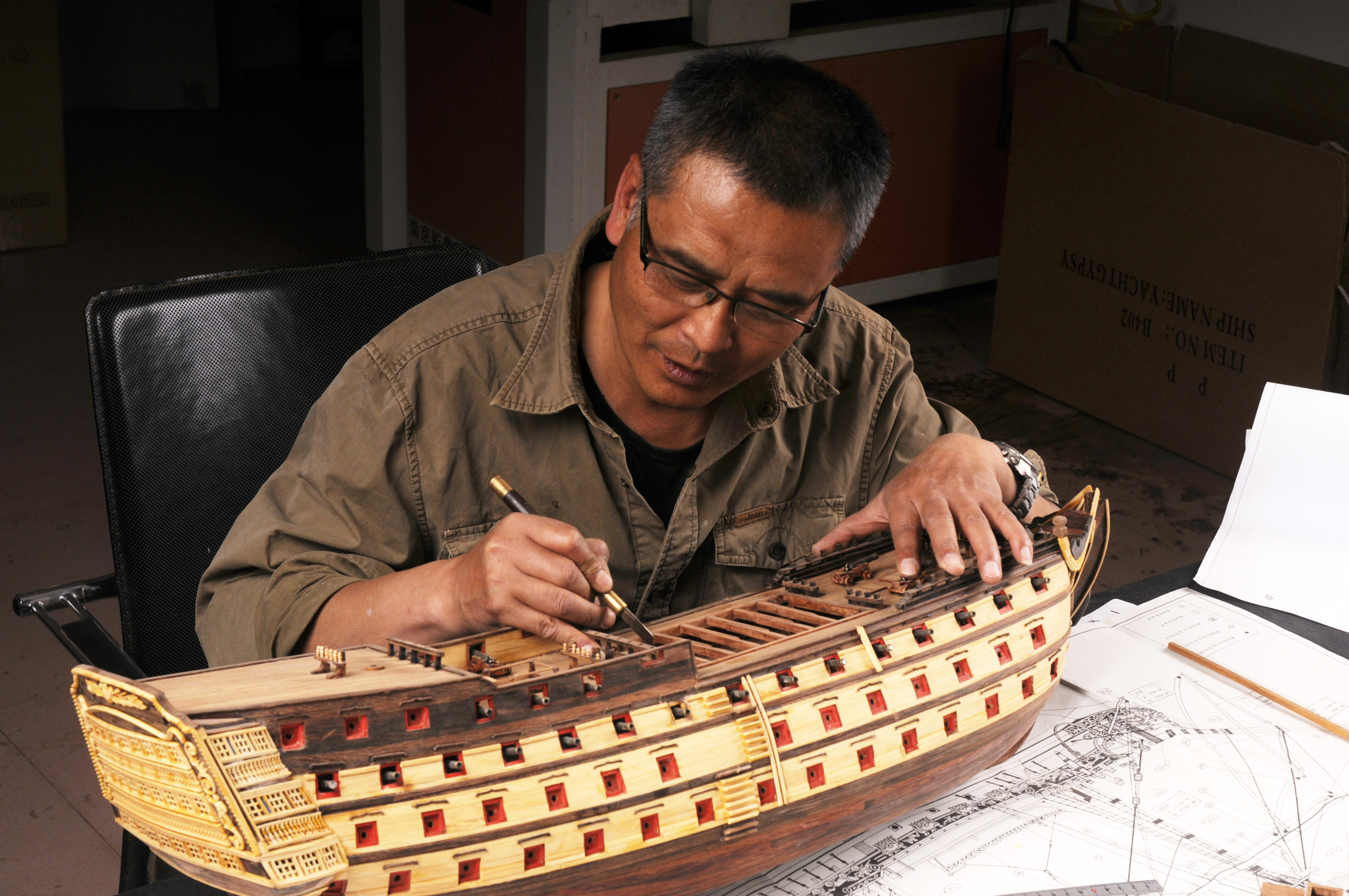 图为付昆祥在工作室制作郑和船模 受访者供图