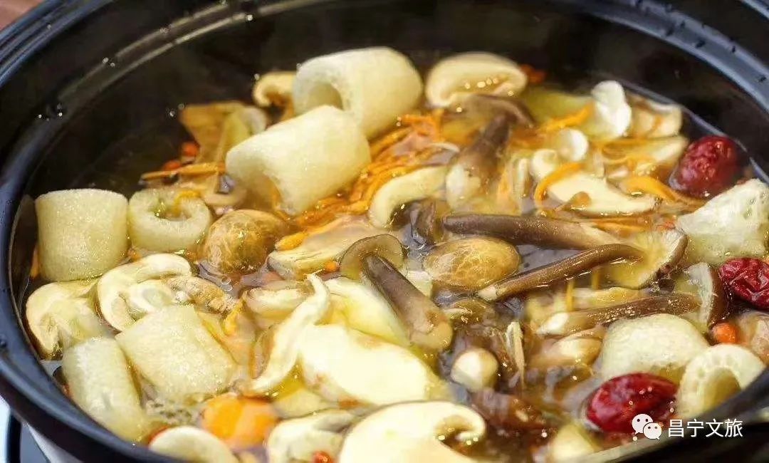 最常见的是以鸡和牛肉打底,再配以少许中药材,焖煮半个小时,原本就鲜美无穷的野生菌会挟着鲜香浓郁的高汤,可谓是鲜上加鲜,让人回味无穷。