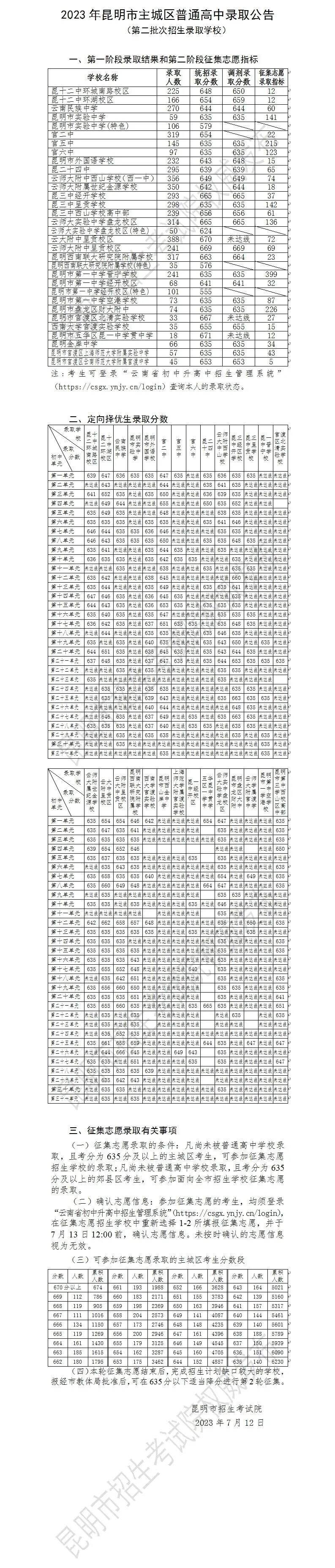 7月12日,昆明市招生考试院公布2023年昆明市主城区普通高中录取公告(第二批次招生录取学校)。