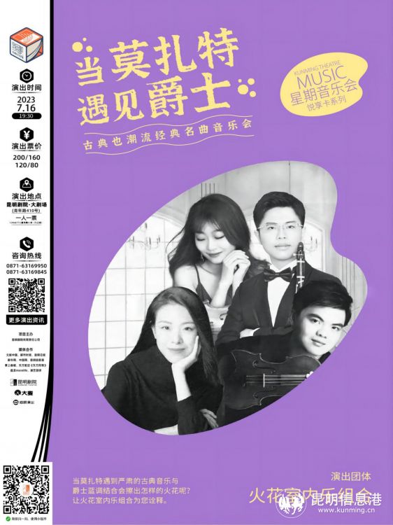 《当莫扎特遇见爵士——古典也潮流经典名曲音乐会》,“火花室内乐组合”将带来对音乐全新的诠释,年轻演奏家们打破界限,将古典乐和爵士乐完美融合,给听众不一样的音乐体验。在古典和爵士之间,在演奏家和观众们之间,找到了梦寐以求的平衡,换一种方式、换一个角度欣赏,或许这就是更能打动人心的音乐。