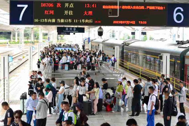 据中国铁路昆明局集团有限公司(以下简称:国铁昆明局)数据,目前,昆明站暑运日均发送旅客近14万人次,与去年同期相比增幅超过3成。