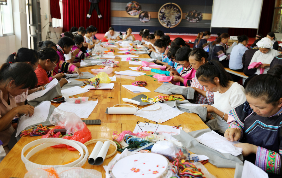 积极创新发展方式,走融合发展、区域协调发展道路,成立滇黔桂跨省区刺绣产业联盟,充分利用其产品、技术、经营、人才等综合优势,引导掌握刺绣手艺的人员加入,全力帮助群众增收致富。“我和周边村寨的绣娘一起做刺绣就卖给当地人,后来,在乡政府的帮助下,成立了滇黔桂刺绣联盟,大家一起发展刺绣产业,接到订单后,有的负责刺绣,有的负责裁剪缝制,大家齐心协力完成,我们的绣品越做越好,现在卖到全国的好多地方。”罗平珍秀布依手工产业合作社负责人李连珍介绍说。目前,三省(区)600余名布依族、壮族等妇女发展指尖经济,实现居家就业,每月增收近2000元。同时,联盟创新“1+3”模式,即一家办培训三家共学习,破解了毗邻乡镇群众学习农业种养技术和民族服饰刺绣技艺难题的问题,共培训800余人次。