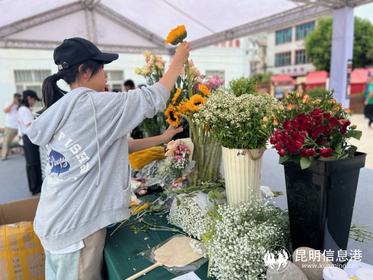 舞台上的歌声悠扬婉转,舞台下“花旅宝峰”活动同样缤纷多彩。体验专区集花束制作、花卉团扇制作、古法造纸、鹅卵石画、陶艺制作等活动为一体,邀请市民和游客在共同感受非遗文化的精彩,在亲手体验中领略民间艺术绽放的别样魅力。