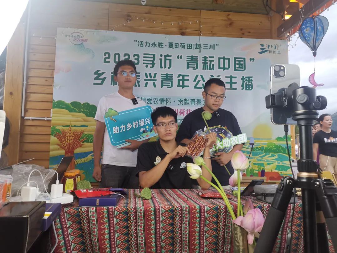 7月12日,服务团在三川依托自身团队中农大丁同学、农大高同学、农大梁同学等在抖音等新媒体平台的影响力,积极与当地企业沟通协调,认真选品,在抖音“彩云巴胺”账号开启了2023寻访“青耘中国”乡村振兴青年公益直播活动,以直播带货形式助力乡村振兴。