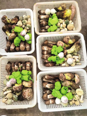 商户为不同品种的野生菌配料,然后打包免费送给顾客 都市时报全媒体记者 杨文爽