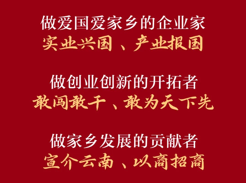 三是希望大家做家乡发展的贡献者。秉持富滇济世的优良传统,发挥自身优势,积极宣介云南、以商招商,把更多的好项目好产业建在家乡,把更多的优秀人才引回家乡,把更多的资金技术投向家乡,在回报家乡的同时,实现自身的发展壮大。
