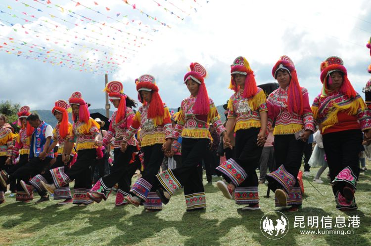 7月23日下午在几子湾村分会场,数千名辖区群众齐聚小青山,当地的彝族同胞与各地游客欢快互动,开展了彝女赛装、爬油杆、公鸡啄架、情歌对唱、赠信物、拴红线、抢喜糖、抹花脸等一系列精彩的民俗活动,向广大游客、村民展现了广通地区古老彝族部落古朴而浪漫的原生态婚恋、交友、择偶习俗,共同欢庆“六月六”彝族情人节。