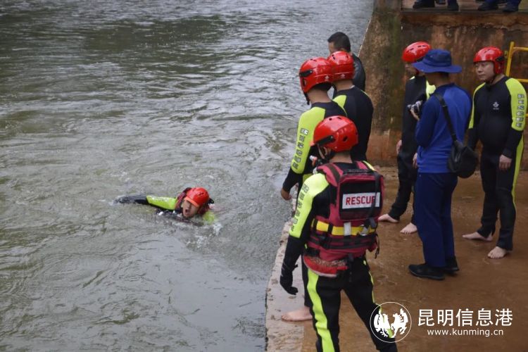 昆明信息港讯 记者合宇聪 为进一步加强涉水警情应急处置水平,最大限度地减少人员伤亡和财产损失。日前,昆明市公安局五华分局红云派出所邀请五华消防救援大队消防员在盘龙江对接处警民辅警进行水域实操培训。