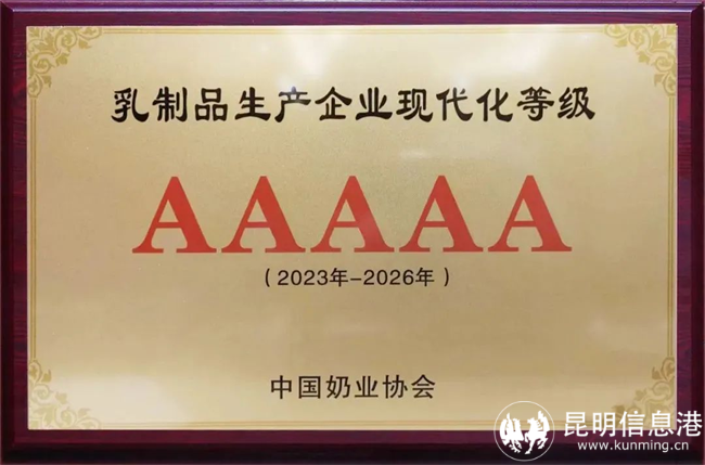 在会上,中国奶协公布了首批中国乳制品生产企业现代化等级评价名单,并对通过现代化等级评价的乳制品生产企业进行现场授牌,昆明雪兰牛奶有限责任公司获评2023年首批AAAAA级(5A级)现代化乳制品生产企业荣誉。