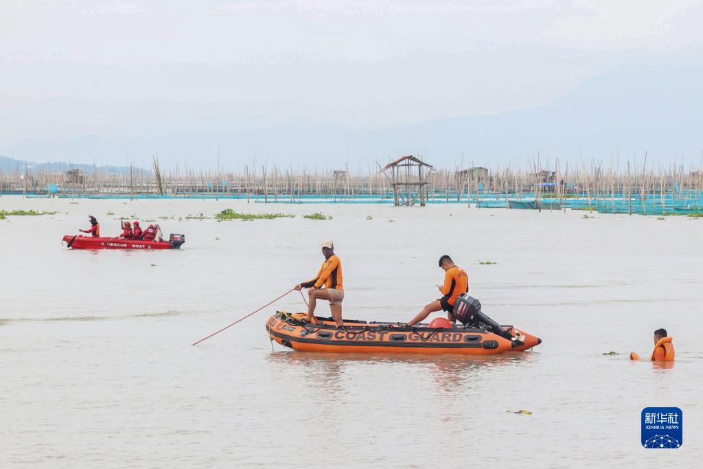7月28日,在菲律宾黎刹省,菲律宾海岸警卫队成员在倾覆船只事故现场开展搜救行动。