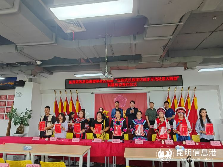 昆明信息港讯 记者段佳琪 通讯员李丽娟 近日,昆明市呈贡区洛龙街道碧潭社区举行“互嵌式民族团结进步示范社区大联盟”创建活动,与云南省37个州市社区签订创建“互嵌式民族团结进步示范社区大联盟”共建协议。