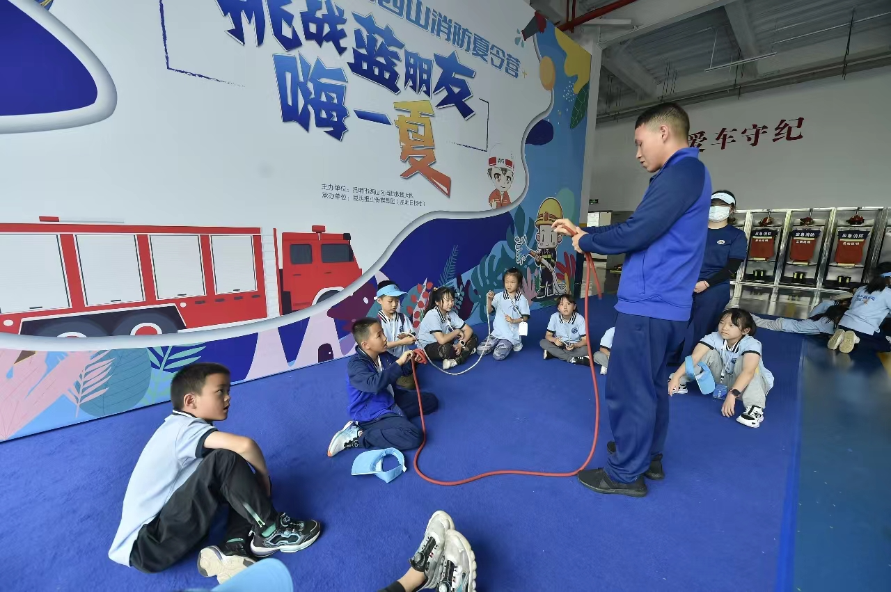 昆明信息港讯(昆明日报 记者杨俊霞 王俊星 郭兴荣) 2023年第三届“挑战蓝朋友”西山消防夏令营小龄组的活动刚刚落下帷幕,今天,大龄组59名小学员接续快乐再出发,携手西山“蓝朋友”,一起探索科技奥秘、学习消防技能,边玩边学收获多。