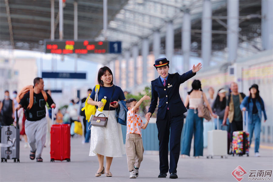 面对持续高位的暑运旅游客流,国铁昆明局在沿线各站增派会当地少数民族语言及英语的工作人员加强候车大厅的巡视,设立少数民族和中英文“双语”服务台,为少数民族及外籍旅客乘车提供便利。同时,各热门车站采取加开售票窗口及安检通道等措施,做好旅客出行引导和服务,避免人员集聚和通道堵塞。在昆明、昆明南、广通北、大理、玉溪、弥勒、红河7个车站实行站内便捷换乘,方便旅客乘车。