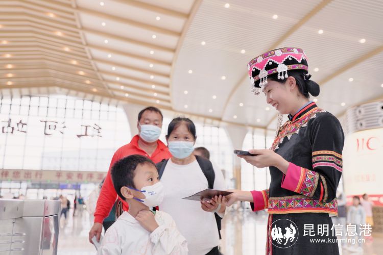 面对持续高位的暑运旅游客流,国铁昆明局在沿线各站增派会当地少数民族语言及英语的工作人员加强候车大厅的巡视,设立少数民族和中英文“双语”服务台,为少数民族及外籍旅客乘车提供便利。同时,各热门车站采取加开售票窗口及安检通道等措施,做好旅客出行引导和服务,避免人员集聚和通道堵塞。在昆明、昆明南、广通北、大理、玉溪、弥勒、红河7个车站实行站内便捷换乘,方便旅客乘车。