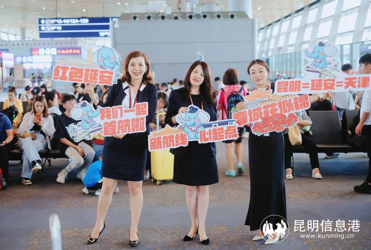 昆明信息港讯 记者上官艳君 8月1日,昆明=延安=天津航线迎来首航,昆明机场新增通航点—革命圣地延安。该条航线由华夏航空运营,每周二、四、六执飞,机型为空客320。