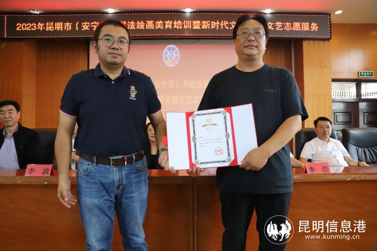 昆明信息港讯 记者王奕然 8月4日,2023年昆明市(安宁市)书法绘画美育培训暨新时代文明实践文艺志愿服务活动开班仪式在安宁市华清中学举行,活动旨在加强引导昆明市文艺公益培训工作、文艺惠民工作的开展,有效提升各县市区中小学教师书法绘画美育及文艺创作水平。