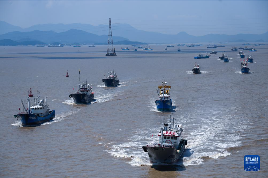8月6日,渔船从舟山普陀沈家门渔港驶出,前往东海渔场。