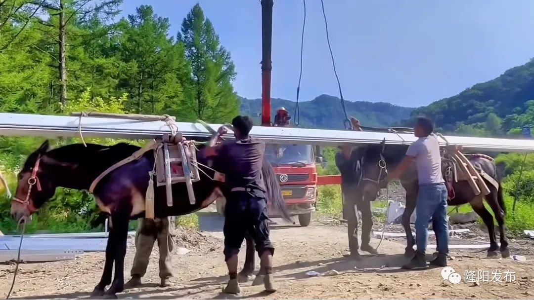 近年来,随着乡村振兴的推进,山区资源开发更广,古老的“马帮”,适应了新的时代,发挥着与众不同的作用。2022年隆阳区引进光伏项目,瓦房乡徐掌村是光伏电站建设的选址之一,涉及面积556亩。由于光伏板大多数需要架设在山坡上,加之地势陡峭险峻,很多地块公路不通,现代运输工具无法施展,徐掌“马帮”作用大大凸显,接到了驮水泥、砂灰、驮钢筋、物资等等的“新业务”,这也让“马帮”的发展更加迅速。