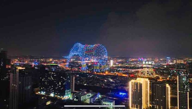 8月14日晚9时,在昆明巫家坝片区飞虎大道龙光玖云台小区旁进行了一场极具观赏性的无人机表演。1000架次无人机在空中通过队列变换造型,以孔雀、金马碧鸡坊、大象等云南风景及特色地标等元素为主题,点亮夜空。