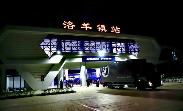 凌晨的昆明洛羊镇站,成昆高铁快运专列快递装卸