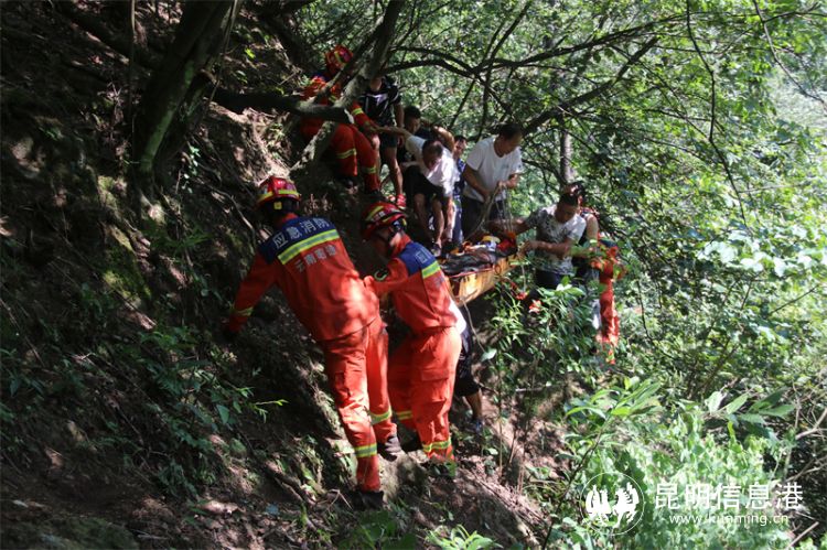 8月14日,昭通市盐津县庙坝镇小寨村两村民就相约一同进山采鸡枞,结果,一人不慎跌崖无法动弹,只能求助消防。