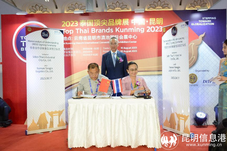 昆明信息港讯 8月17日,在第7届中国-南亚博览会暨第27届中国昆明进出口商品交易会(以下简称“南博会”)“泰国顶尖品牌展”现场,云南腾晋物流股份有限公司(简称“腾晋物流”)与泰国乌隆他尼府工业城有限公司(Udon Thani Industrial City Co.,Ltd.)举行签约仪式,正式签订《战略合作框架协议》。这是本届南博会上签订的首个中泰企业间合作协议。