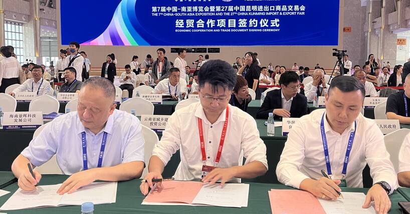 8月17日上午,第7届南亚博览会暨第27届中国昆明进出口商品交易会经贸合作项目签约仪式在昆明滇池国际会展中心举行。本次集中签约仪式,陆良县签订投资协议项目6个,协议投资总额约58.8亿元。