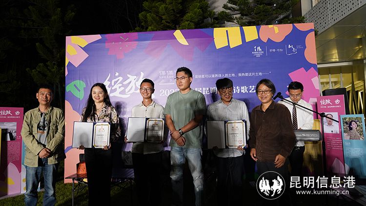随着一首首浪漫的诗歌被朗诵,一首首乐曲被演唱,“绽放杯”昆明城市诗歌节征文大赛获奖名单也被揭秘。据介绍,本次“绽放”主题征文大赛受到了来自全国各地广大诗歌艺术爱好者的关注和支持,经过一系列严格的初评、复评、终评等环节,最终评选出一等奖1名、二等奖2名、三等奖3名。一等奖为河畔草(马丙丽)作品《绽放》(组诗);二等奖分别是谢竺轩作品《国王》(组诗),字童作品《字童的诗》;三等奖分别为冬千(刘锐)作品《花冠用来给时间加冕》(组诗),杨不寒作品《笔墨之绽放》(组诗),李昀璐作品《茉莉夜航》(组诗)。