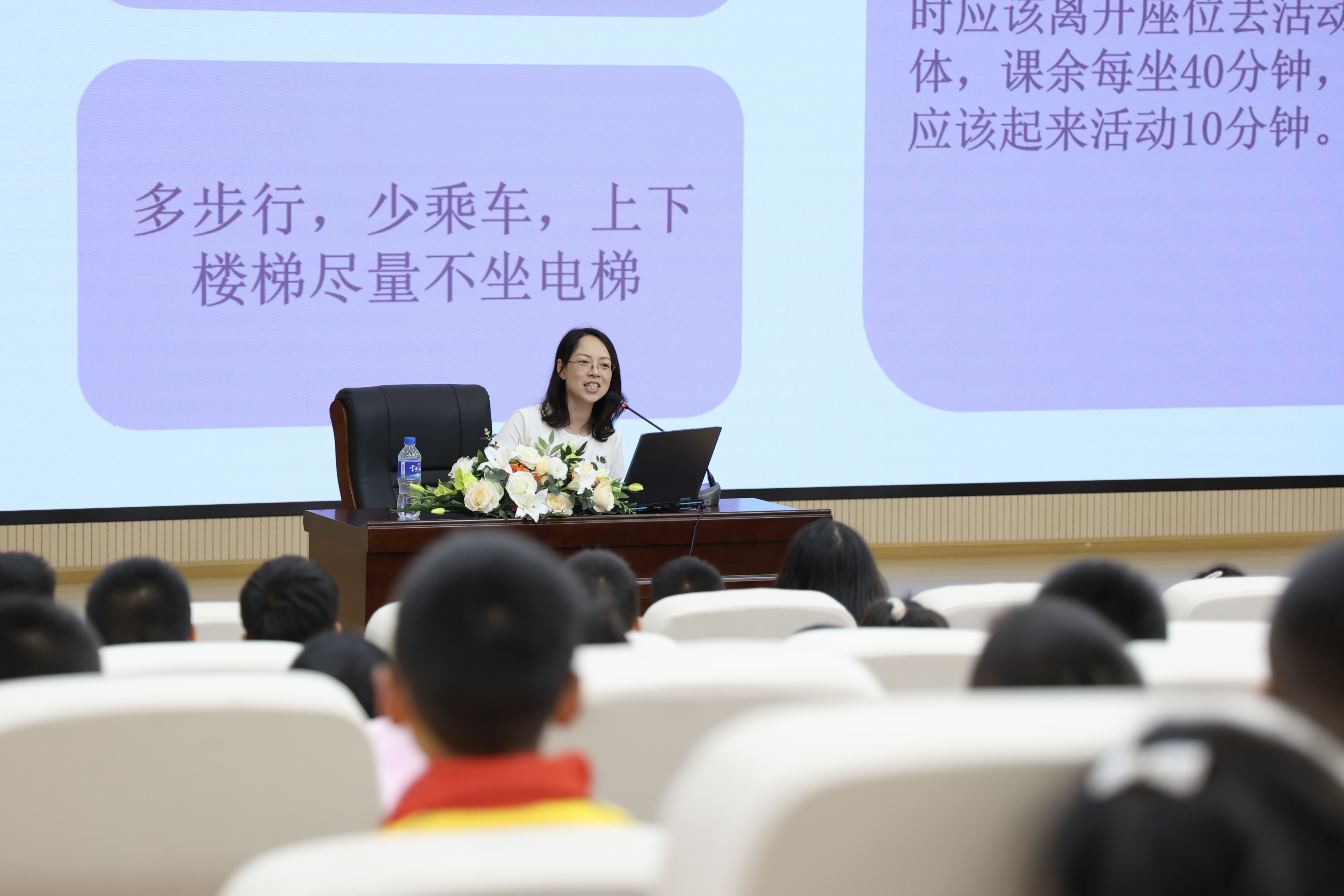 科学的体育锻炼是促进儿童青少年全面发展的重要方式。讲座伊始,陶晓黎老师用提问的方式引导同学们思考如何养成健康的生活方式,用一个个生动的案例深入浅出地向大家普及了如何形成科学的运动习惯、合理的膳食行为、良好的起居规律等知识,最后倡导同学们在身体成长的黄金期自主选择锻炼项目,自觉进行体育锻炼,着眼于提升身体素质,养成终身运动的好习惯。近一个小时的讲座,同学们丝毫未觉枯燥乏味,反而沉浸在体育知识的氛围中。
