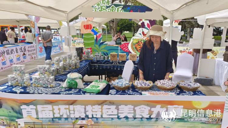 来到海埂公园团结广场,美食展位一个接一个,一排排铺开,现场集市各种各样的美食、工艺品吸引了市民及游客驻足。文创冰淇淋、港式蛋仔、现磨咖啡、夏日冰饮、云南各地特色美食小吃等,让双节期间来到公园游玩的游客,不仅可以赏美景,也能品尝到云南特色美食及特产。