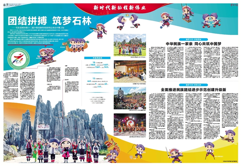 积极打造石林杏林大观园全国科普教育基地、未来也来公园全国中小学生研学实践教育基地。与北京阳光未来艺术教育基金会合力推进“铸牢中华民族共同体意识宣传教育和探索实践”活动。与西南民族大学、云南民族大学等知名院校开展校地合作。共同构筑为党育人、为国育才的牢固阵地,共同搭建相互了解、相互尊重、相互包容、相互欣赏、相互学习、相互帮助的平台,共同推动各民族青少年在交往交流交融中全面发展、提高综合素质。充分发挥石林品牌优势,开展多层次多领域多样化的民族联谊活动,促进各民族在空间、文化、经济、社会、心理等方面的全方位嵌入。营造全社会关心民族体育运动的良好氛围,传承发扬民族传统体育项目,促进全民健身和民族团结,推进全民健康。(本版由石林县委宣传部供稿供图)