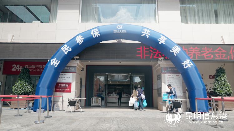 在嘉宾们做客交流的同时,工商银行昆明南屏支行营业厅,也同步开展“全民参保共享美好”宣传活动,前来咨询的商圈经营户、个体经营者和市民朋友络绎不绝。