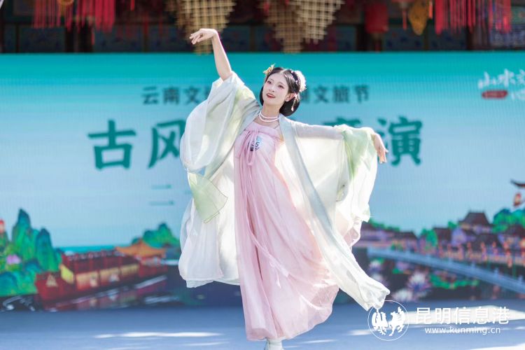 T台秀快闪,初露风华;舞蹈、舞剑、茶道、乐器十八般武艺各显神通,一场华夏霓裳蹁跹大秀在翠湖畔上演。