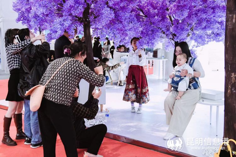 展区内的蓝花楹景观可谓是实力“圈粉”, 一位省外观展游客在展区赞叹:“虽然是造的景观,但能在十月看到这么好看的紫色,也算是不虚此行了”, 五华区通过艺术景观造景的形式,将五月的花海开进十月的文博会,不仅丰富五华文化的呈现形式,也给市民游客展现了五华浪漫的文化氛围。