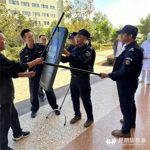 昆明信息港讯 记者合宇聪 为进一步加强重点单位安全管理,提高从业人员应对处理突发事件的防范意识和能力。日前,嵩明县公安局嵩阳派出所到嵩明县中医院开展反恐处突演练。