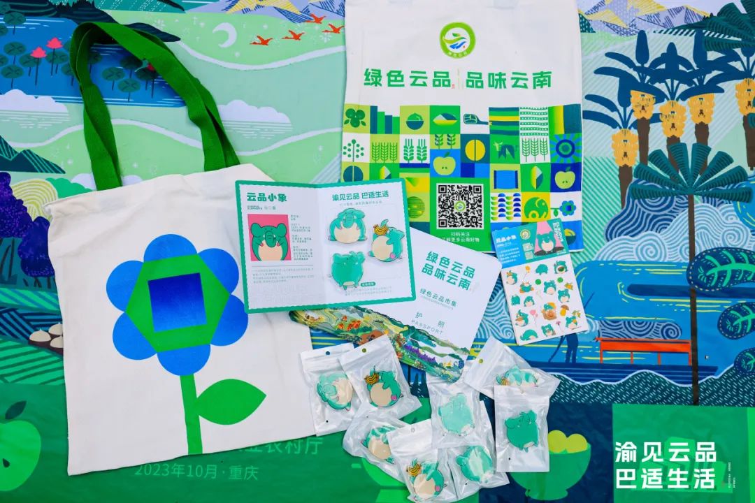 在市集现场的小游戏和打卡活动中,都有机会赢得本次精心准备的云品盲袋,其中不仅有神秘的绿色云品大礼,还有市集相关文创明信片、人见人爱的云品品鉴官“云品小象”的手机支架、贴纸等周边产品。