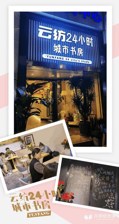2022年,昆明市主城区第一家“24小时城市书房”公共文化项目在昆明网红商圈——云纺文创园落地,为市民提供24小时不间断的文化阅读服务。云纺24小时城市书房由西山区文化和旅游局、云纺集团共同打造,建筑面积80平方米,藏书量为5000册,具有无人化值守、低成本运营、24小时开放的特点。城市书房整体装修风格温馨舒适,有颜值、有内涵、有温度,还营造出了宽敞舒适的阅读空间。从书房开放以来,目前已接待市民和游客超过8万人次。