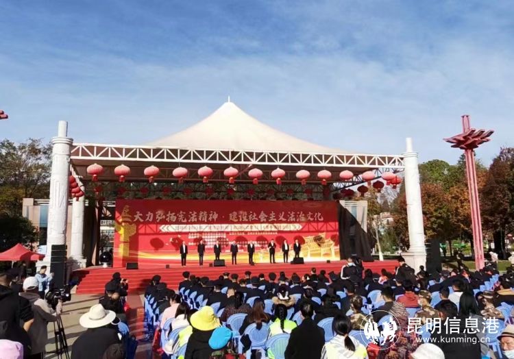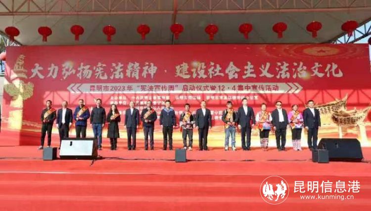 昆明信息港讯 记者周智宇 12月4日,在第十个“国家宪法日”到来之际,昆明市2023年“宪法宣传周”系列宣传活动启动仪式在晋宁区郑和广场举行。昆明市五华区、盘龙区、西山区等县(市)区也于当日在南屏步行街、商业区等地同步开展主题宣传和灯光秀等活动。