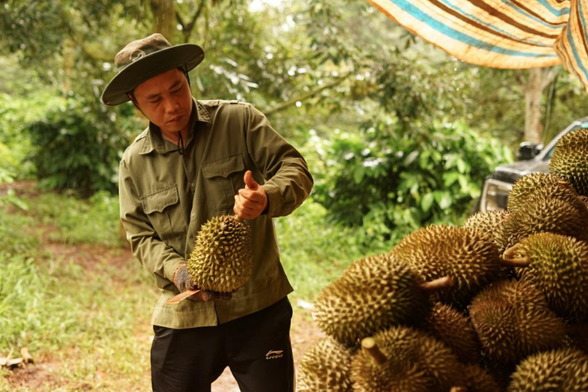 9月15日,在越南多乐省一家榴莲果园,一名果农初步清洁刚采摘的榴莲。依托中国-东盟博览会等平台,越来越多东盟国家的榴莲得以更加便捷地进入中国市场,并以更加优惠的价格走上消费者的餐桌。(新华社记者胡佳丽摄)