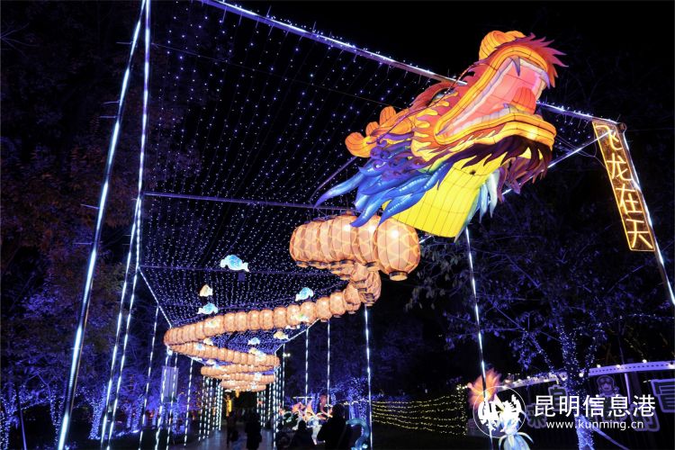 活动由昆明市和盘龙区两级文旅部门联合地方企业举办,颠覆传统的灯光艺术表现形式,将彩灯以创新的姿态呈现在大众面前。结合现代科技与多媒体互动体验,把古老的东方神话——盘龙与瀑布相融合,营造出一种时空交响的奇幻效果。
