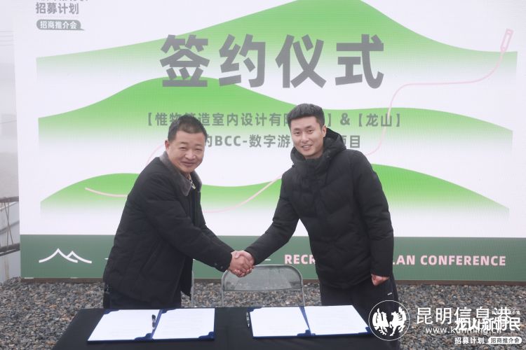 BCC美丽(龙山)有氧计划和日悠悠自然生态园作为入驻企业,分享了在龙山落地的项目,展望未来。两大文旅项目的入驻将与龙山强强结合,为乡村注入更多活力。活动现场,普洱市思茅区花田餐饮管理有限公司和惟物筑造室内设计有限公司与龙山正式签约,他们将携手共建美好龙山。