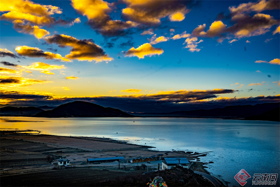 白云缥缈,候鸟飞回,雪山屹立,天光云影
