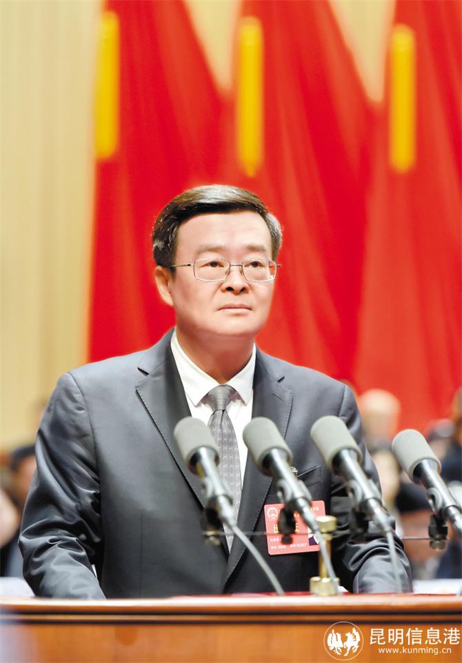 刘佳晨作政府工作报告。昆明日报记者李海曦 王俊星 杨艳辉/摄
